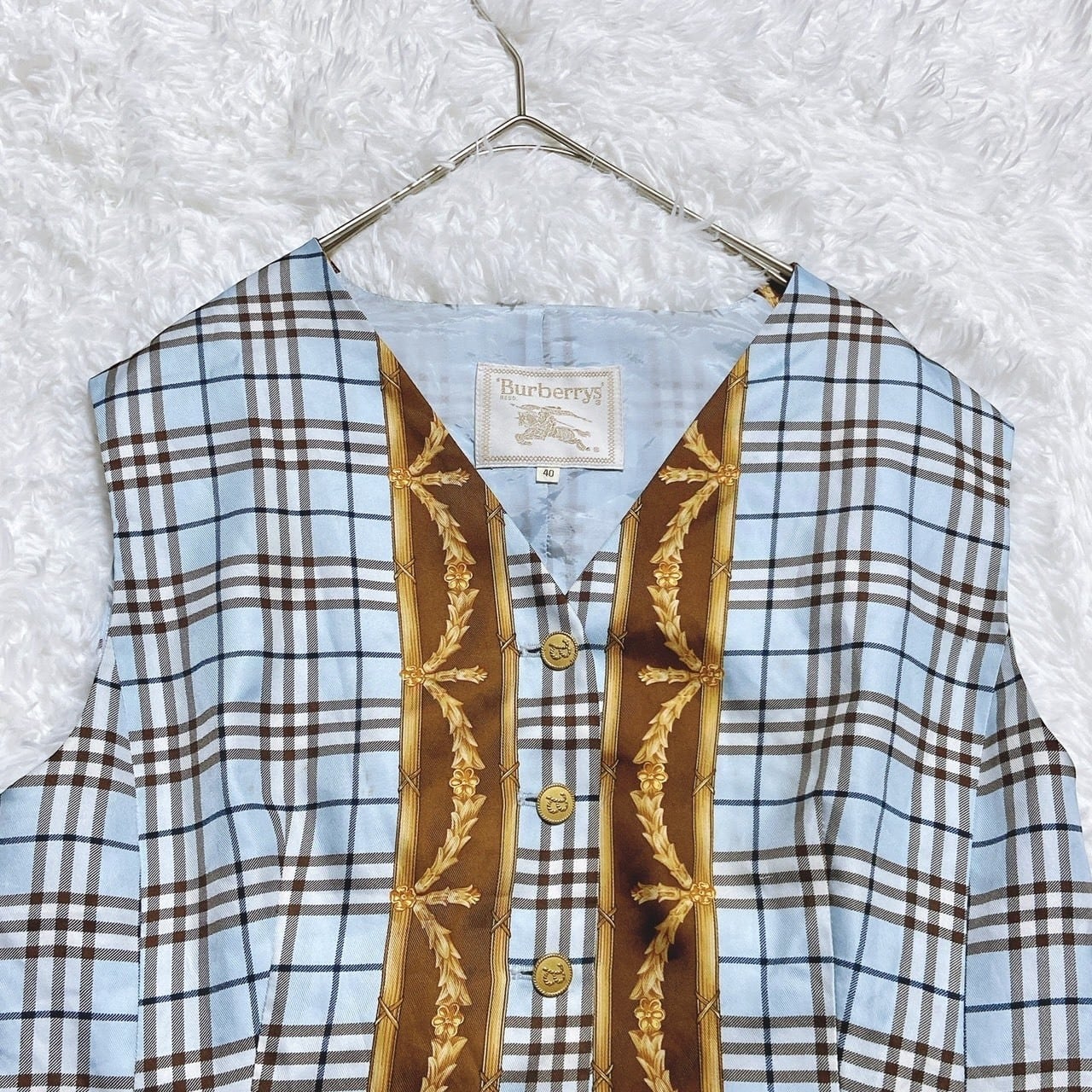 BURBERRYS バーバリーズ ベスト スカーフ柄ノバチェック 金ボタン ジレ 白タグ 40