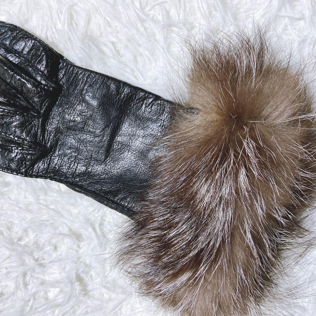 良品⭐️PRADA プラダ レザーグローブ 手袋 ラムスキン フォックスファー