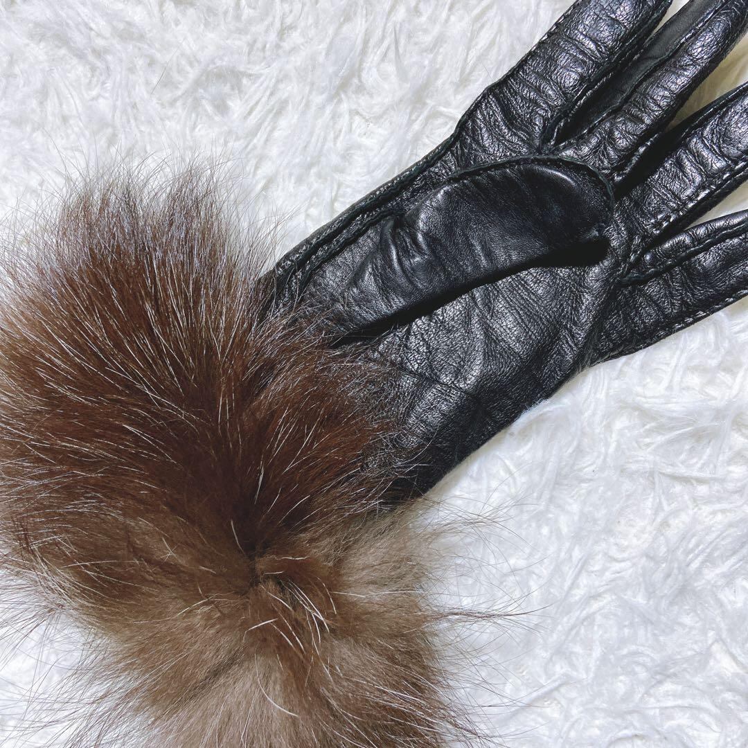 レザー手袋 グローブ ファー ブラック 黒 ヴィンテージ ビンテージ レディース 冬 春 秋 お呼ばれ イベント パーティー